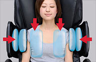 Разнонаправленное движение подушек, как сверху на плечи, так и с каждого бока, охватывает всю поверхность плечевых суставов и быстро снимает боли, усталость, напряжение.